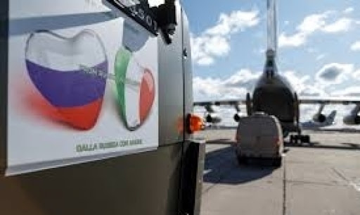 وكانت روسيا قد أرسلت فرقا طبية ومختصين في مجال الأوبئة لمساعدة نظرائهم الإيطاليين في التصدي لفيروس كورونا. كذلك أرسلت روسيا الشهر الماضي 15 طائرة شحن عسكرية إلى إيطاليا محملة بأجهزة التنفس الاصطناعي، ومواد الفحص والمستلزمات الطبية للمساعدة في مكافحة تفشي كورونا.