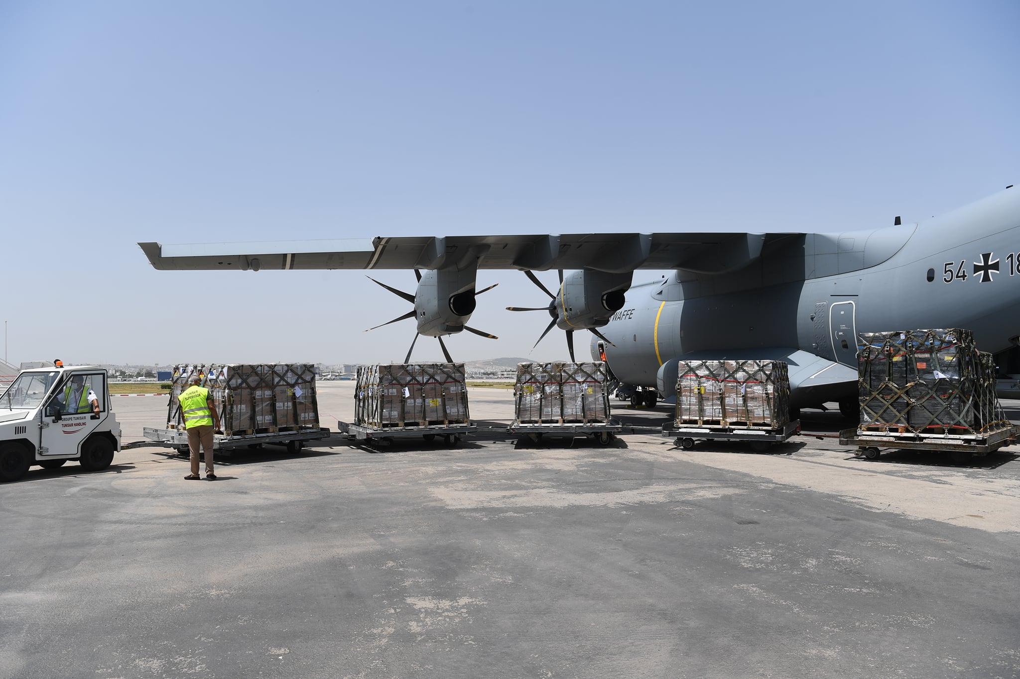 وصول طائرة عسكرية ألمانية صباح اليوم لمطار تونس قرطاج محملة بالتلاقيح ضد الكوفيد-19