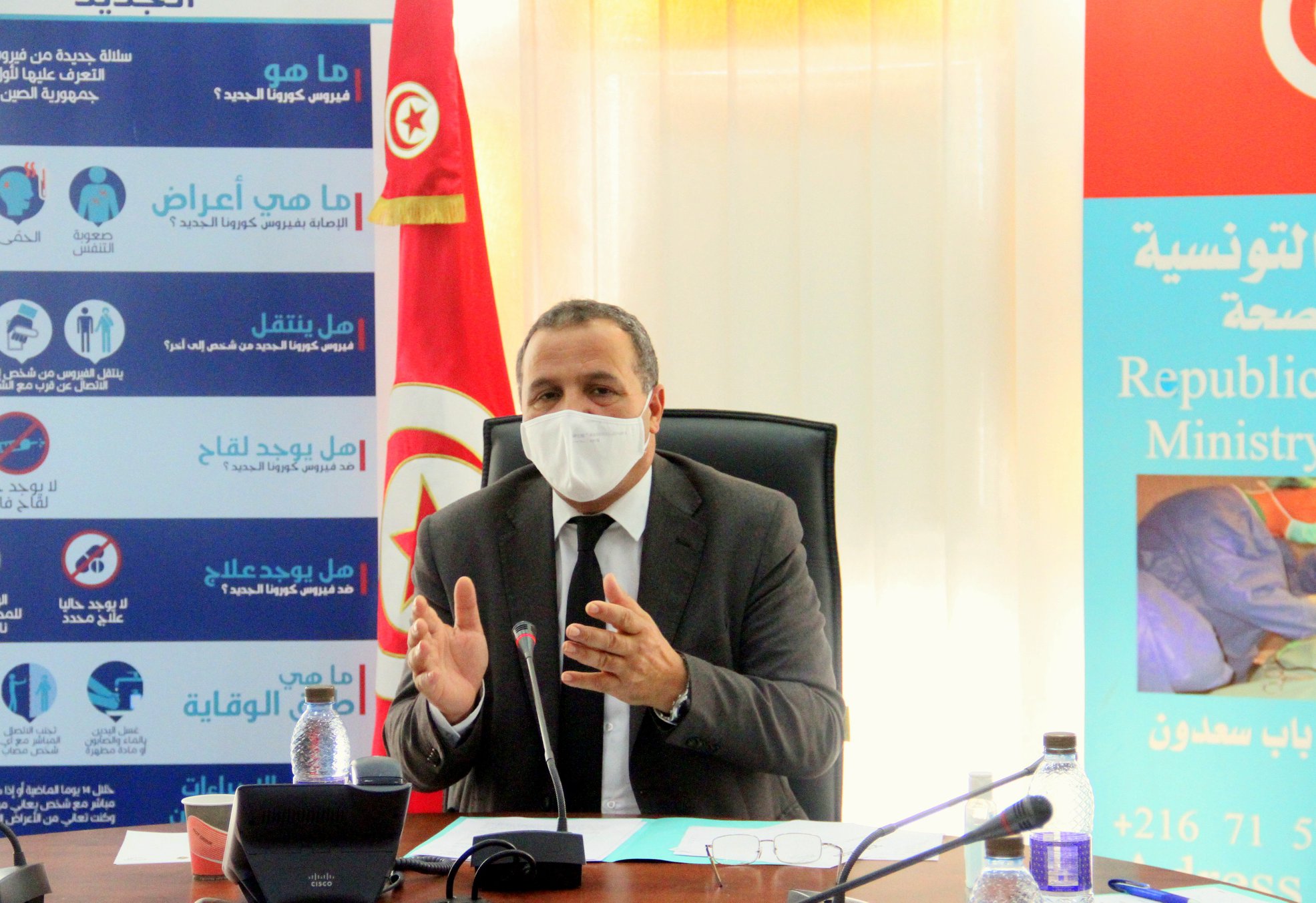 اجتمعت اليوم الثلاثاء 21 أفريل 2020 اللجنة المشرفة على حوكمة التصرف في حساب أموال المشاركة عدد 6 المسمّى “حساب التوقّي ومجابهة الجوائح الصحية” بإشراف وزير الصحة الدكتور عبد اللطيف المكي وبحضور السيد سمير ماجول، رئيس الاتحاد التونسي للصناعة والتجارة والصناعات التقليدية، والسيد عبد الكريم جراد الأمين العام المساعد للاتحاد العام التونسي للشغل وممثلي كل من وزارة المالية والتجارة والشؤون الاجتماعية بالإضافة لممثلي مختلف الإدارات العامة بالوزارة، وقد تمّ خلال هذا الاجتماع المصادقة على محضر جلسة الاجتماع الأول للجنة المنعقد بتاريخ 08 أفريل 2020 كما تم تقديم عرض للجنة بخصوص :