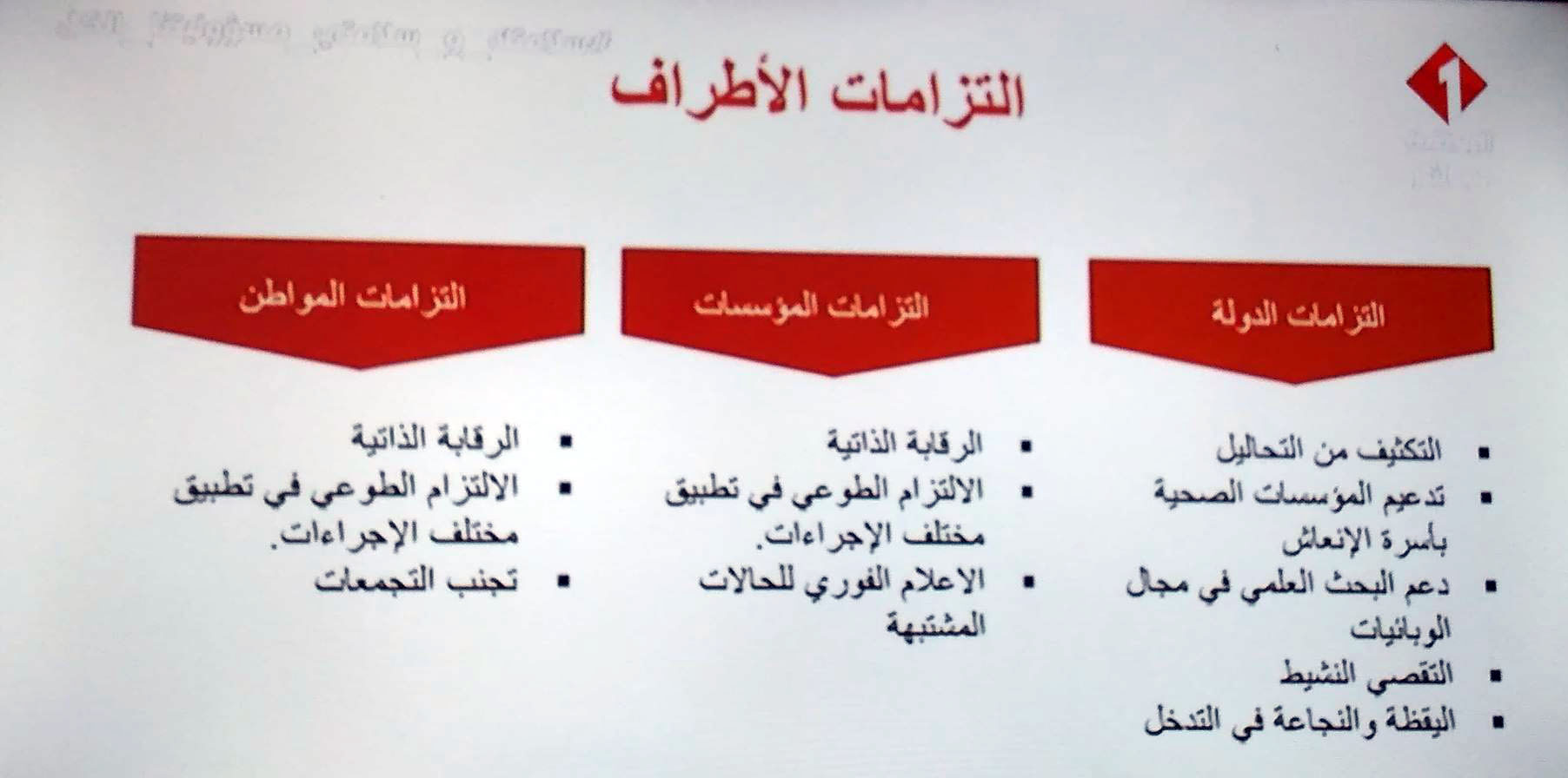 - تم سن العديد من الإجراءات في المؤسسات منها الإلتزام بلبس الكمامات و تأمين التنقل الذاتي