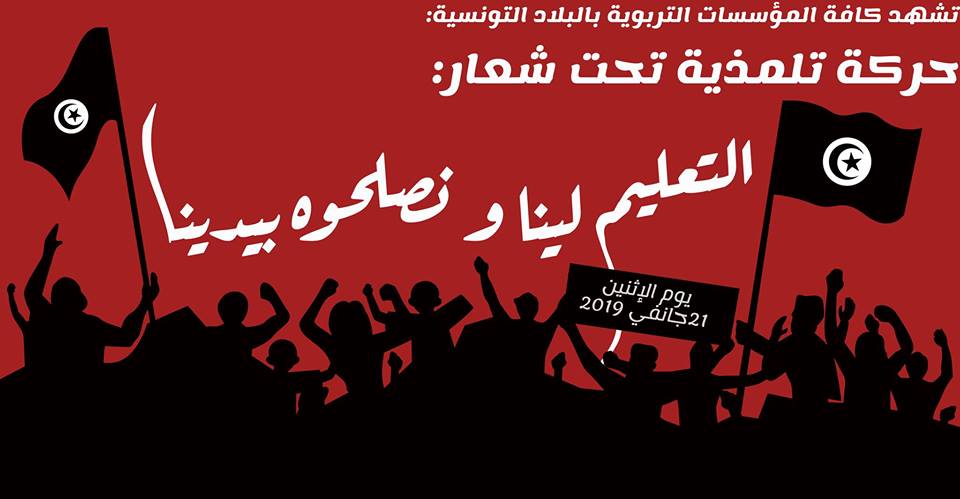 يخرج اليوم 21 جانفي 2019 عدد كبير من التلاميذ بالمعاهد الإعدادية و الثانوية بمختلف ولايات الجمهورية. اللاف للإنتباه أن تلاميذ المعهد النموذجي بتونس قادو هذا التحرك بتونس العاصمة حيث إتجهوا رفقة عدد من تلاميذ المعاهد المجاورة للقيام بوقفة إحتجاجية أمام المندوبية الجهوي للتعليم تونس 1 مطالبين بتسوية وضعيتهم راجيين الرجوع في أقرب وقت لمقاعد الدراسة