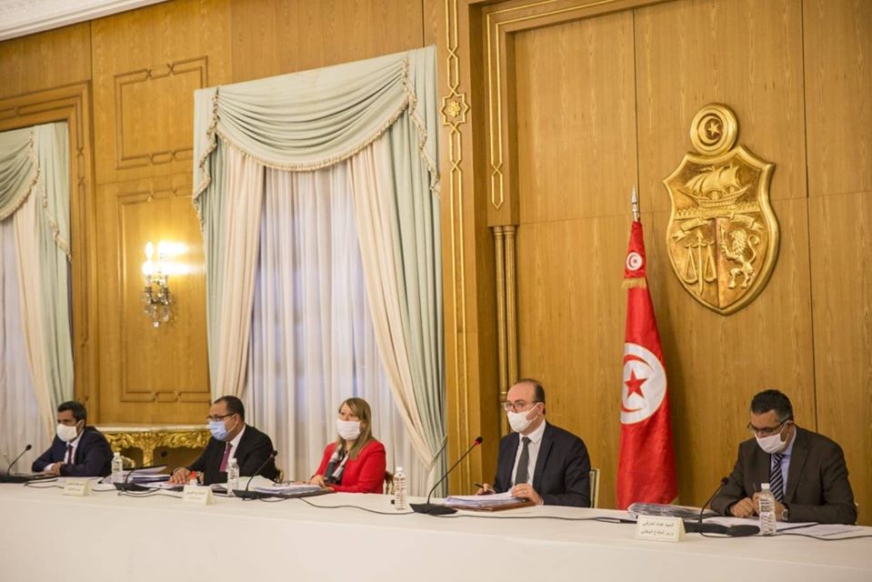 On 13 أبريل، 2020 by sarraأشرف رئيس الحكومة إلياس الفخفاخ مساء اليوم الإثنين 13 أفريل 2020 بدار الضيافة بقرطاج على الاجتماع الدوري للهيئة الوطنية لمجابهة الكورونا.واستعرض المجلس جملة من البيانات التي تطرقت إلى الوضع الأمني العام بالبلاد ومدى الالتزام بضوابط حظر الجولان ومقتضيات الحجر الصحي الشامل.وتطرق المجلس إلى الوضع الاجتماعي العام بالبلاد واستعرض تقدم تنفيذ الإجراءات الاجتماعية المتخذة في الغرض