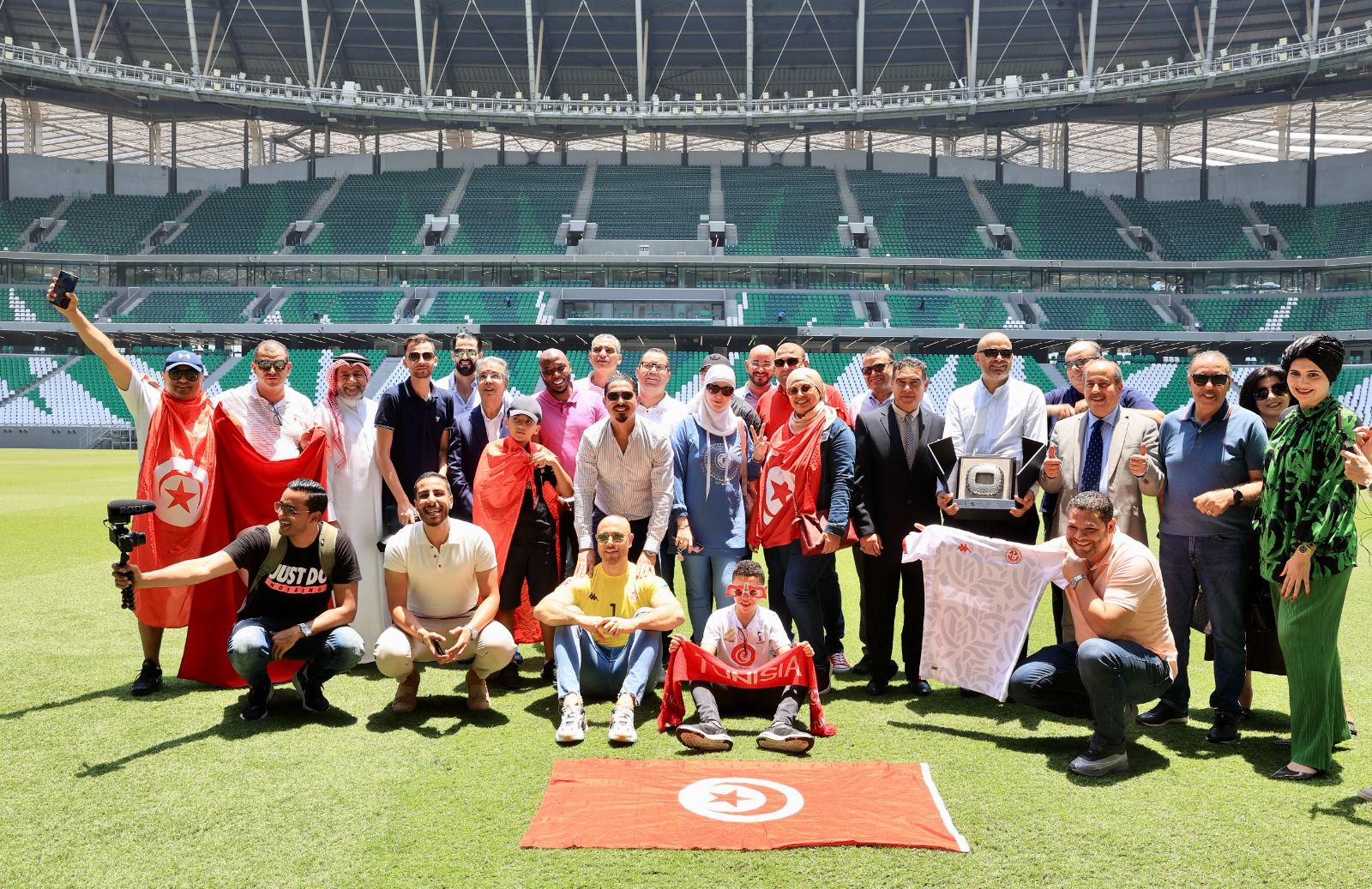 On 8 يونيو، 2022 by sarraدعا نجما الكرة التونسية طارق ذياب وحاتم الطرابلسي المشجّعين لدعم منتخب نسور قرطاج خلال مشاركته في منافسات كأس العالم FIFA قطر 2022، والتي يستهلها بمواجهة منتخب الدنمارك، في استاد المدينة التعليمية، الذي يستضيف كذلك مباراة تونس أمام فرنسا بطل العالم في 30 نوفمبر المقبل. وفي حوار مع موقع “Qatar2022.qa”، أكّد ذياب والطرابلسي أنّ المشاركة في